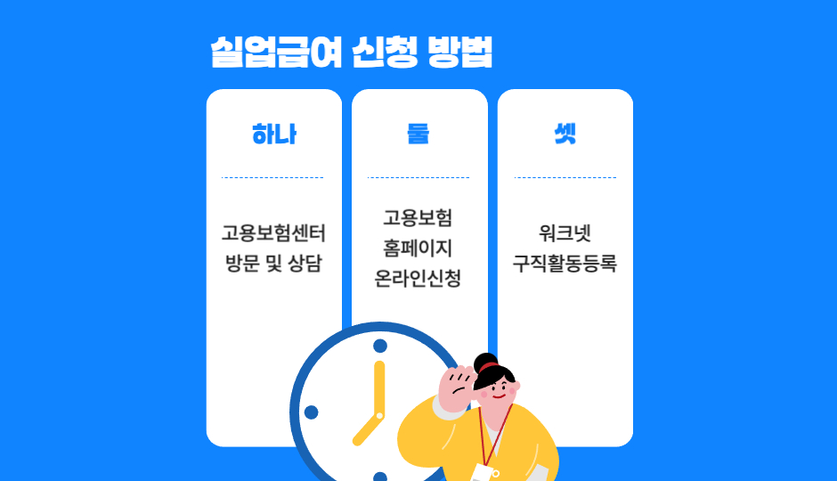 고용보험 홈페이지를 통하여 실업급여 신청을 합니다. 회원가입 > 본인 정보 입력 > 퇴사 사유 > 구직 계획을 작성하여 제출합니다.