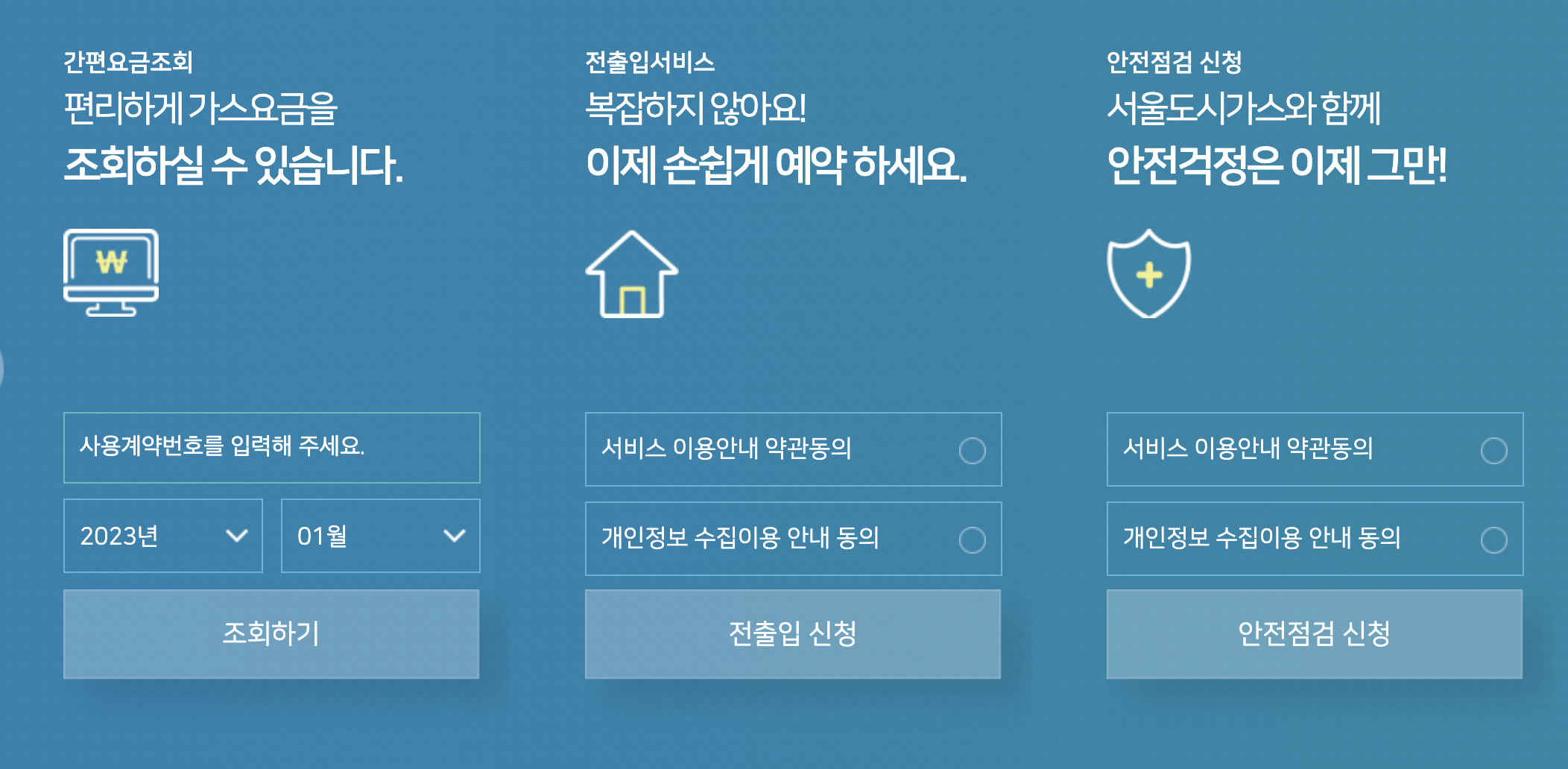 모바일에 가스앱을 설치 후, 본인인증을 진행 후 계약자 정보를 입력해 이용하시면 됩니다.