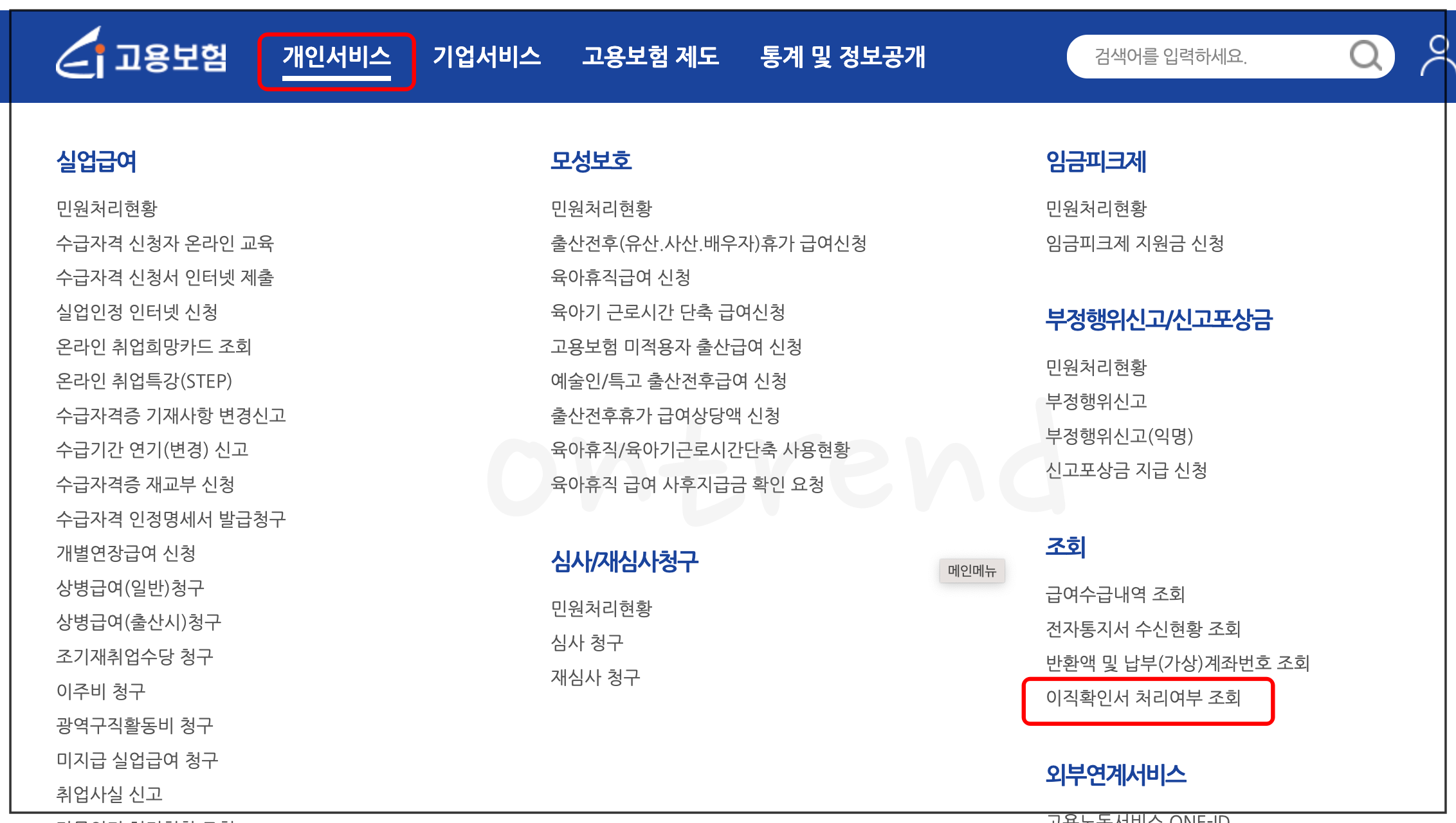 먼저, 이직확인서가 처리되어있는지 확인하는 방법부터 알아보겠습니다.