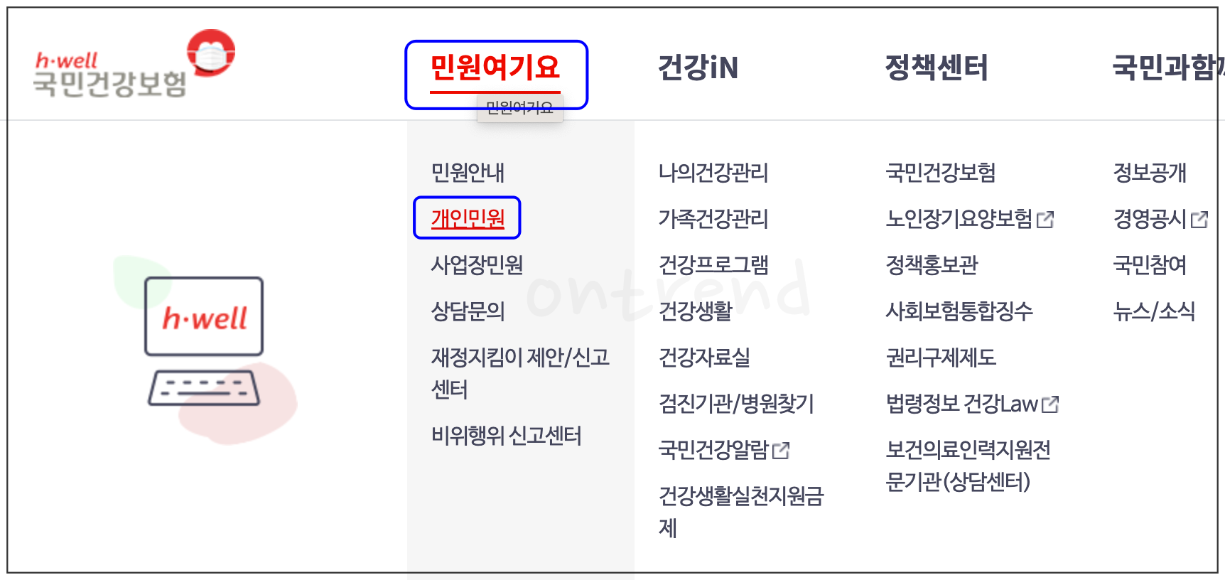 개인의경우 건강보험공단 홈페이지에서 발급이 가능합니다. 인증서를 통한 로그인 진행 후, 발급 진행해 주세요. (공동인증서 / 간편인증서)