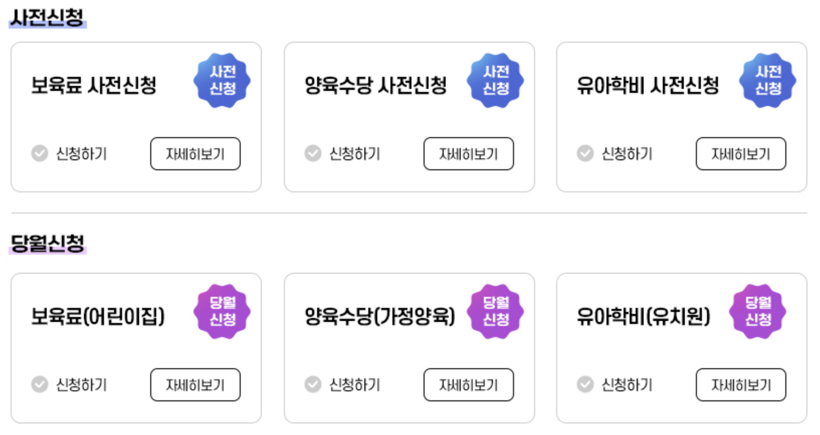 - 양육수당 → 어린이집(보육료) : 신청필요