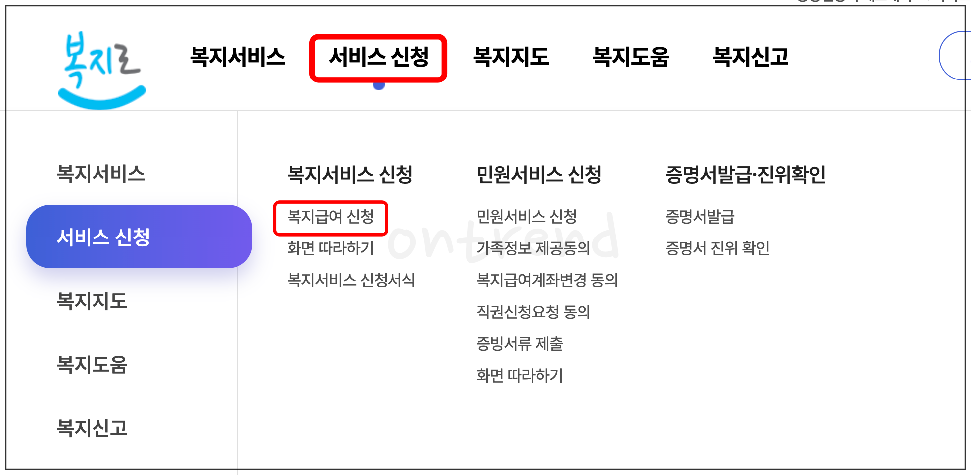 [복지로] 홈페이지 - 로그인 - [서비스 신청] - [복지급여 신청] - [ 아동청소년 : 여성청소년 생리대 바우처지원 ] 선택