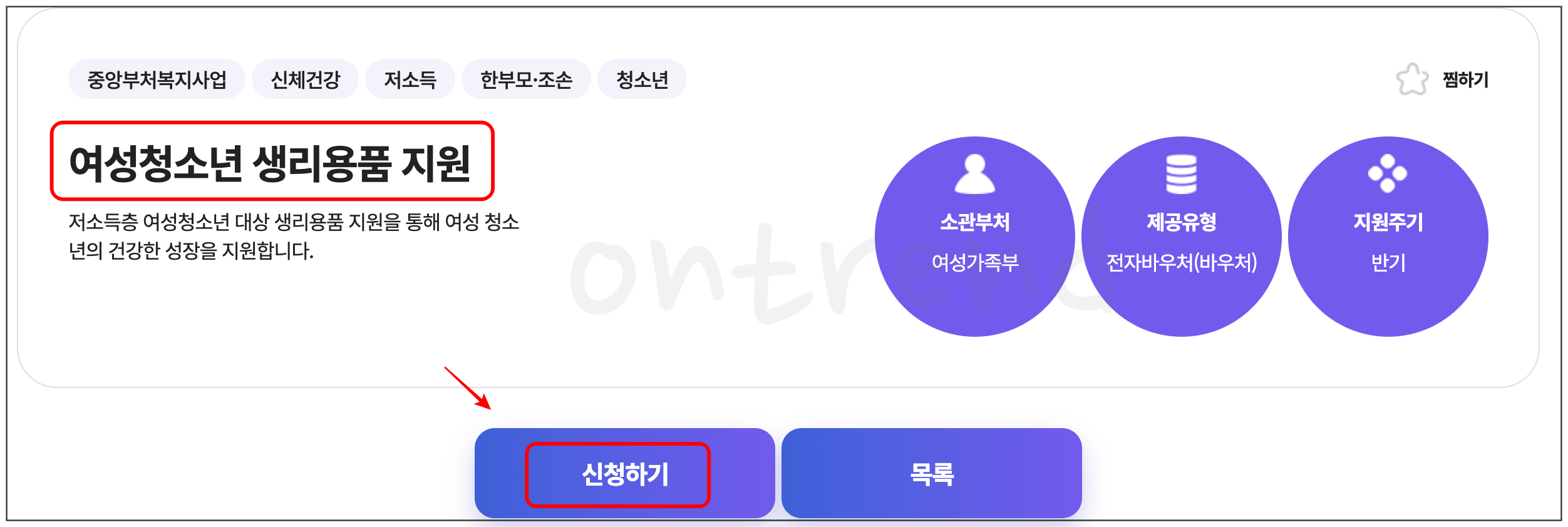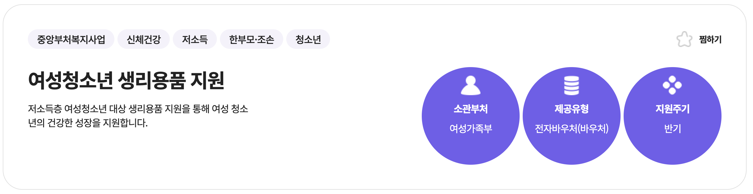저소득층 여성청소년을 대상으로 생리용품을 지원해주는 사업입니다.