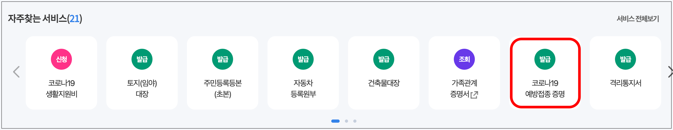 해외여행 혹은 해외출장 준비중이라면 가시는 국가마다 접종증명서를 필요로하는 곳도 있고, 필요 없는 곳도 있으니 사전에 알아보시고 진행하시기 바랍니다. 개인 출력이 어려운 경우라면, 읍면동 주민센터 또는 시군구 보건소에서도 발급이 가능하니 참고하시기 바랍니다. 감사합니다.