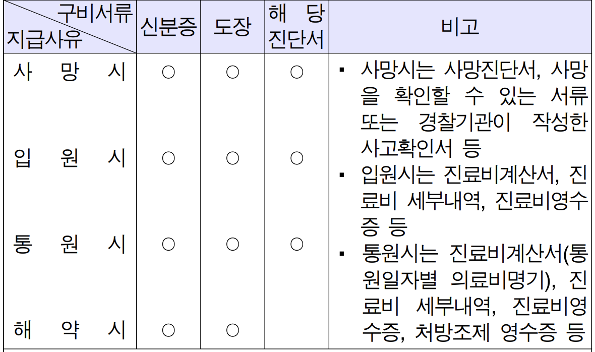 보험금을 청구할 때는 신분증, 도장, 해당진단서가 필요합니다.