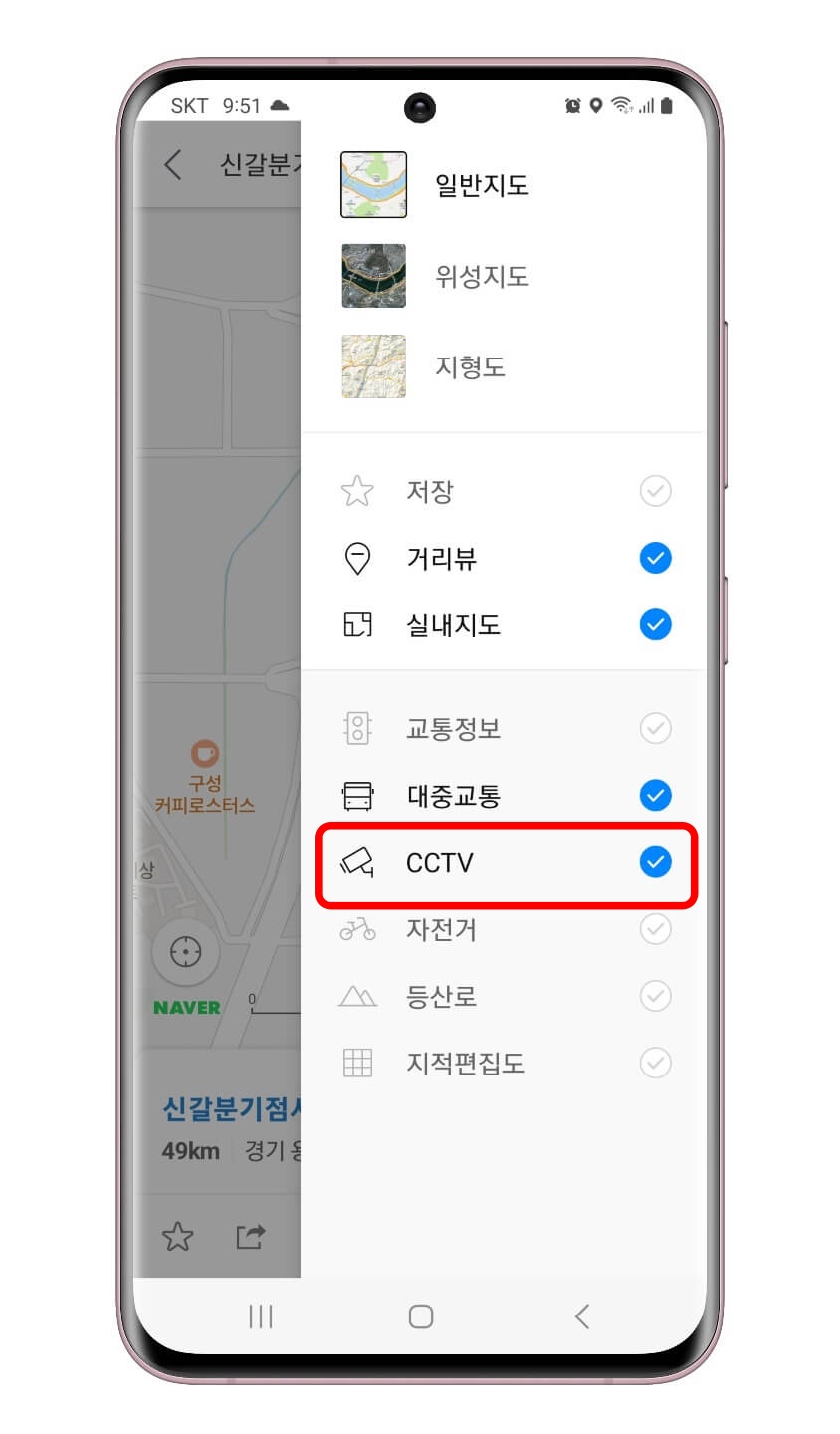 네이버지도를 통하여 실시간 교통상황 CCTV 확인이 가능합니다. 네이버지도 앱을 통하여 확인할 수 있으니, 핸드폰에 [네이버지도]앱 설치가 필요합니다.