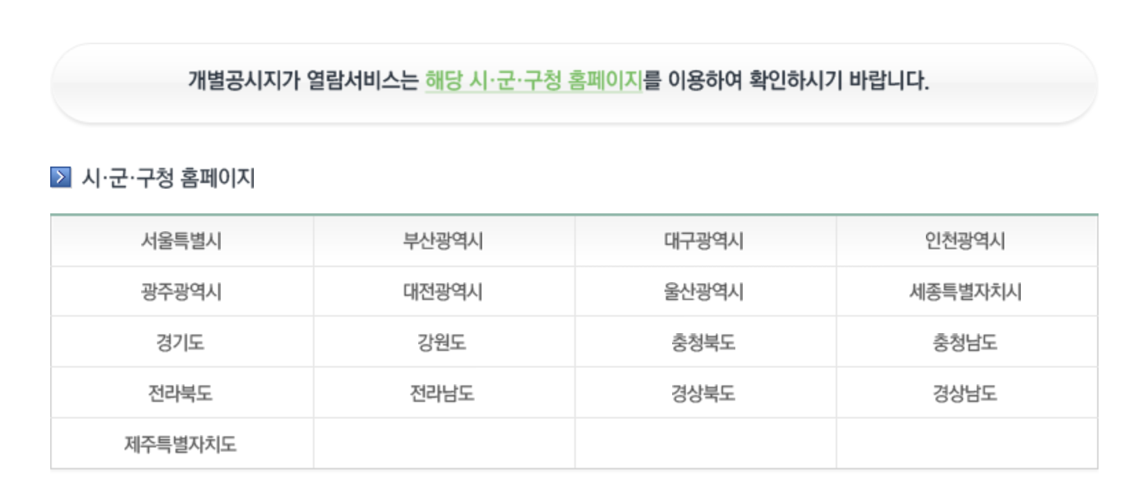 개별공시지가는 해당 시군구청 홈페이지에서 확인할 수 있습니다.